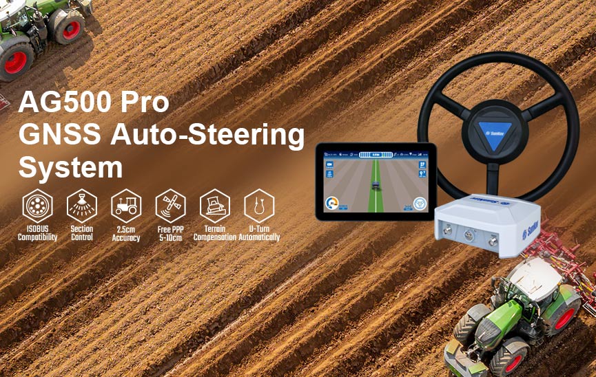 SunNav AG500 Pro auto steering system integrates high-precision GNSS technology to achieve accurate tractor control and navigation. With notable advantages in efficiency, energy conservation, precision, safety, and affordability, AG500 Pro significantly enhances agricultural machinery operations. It improves efficiency, reduces labor costs, and provides farmers with a more convenient, efficient, and intelligent agricultural machinery experience. It is versatile, applicable to tasks such as sowing, cultivating, trenching, ridging, pesticide spraying, transplanting, land consolidation, harvesting, and more.